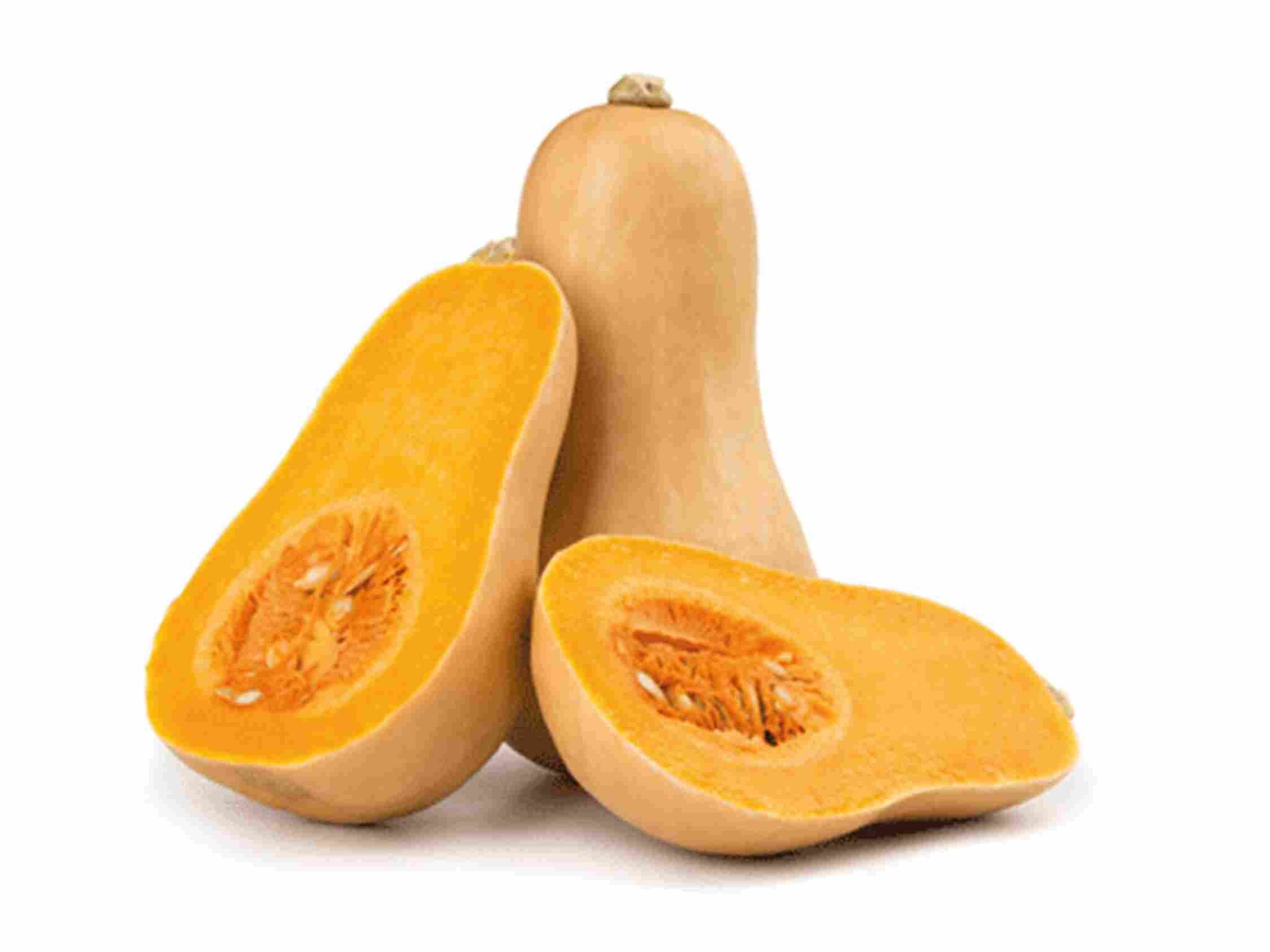 A winter squash with a sweet, nutty flavor. It has a hard, tan-colored rind and a rich, orange flesh. Butternut squash is often roasted, baked, or pureed into soups and sauces. It's a good source of vitamins A and C, as well as fiber.