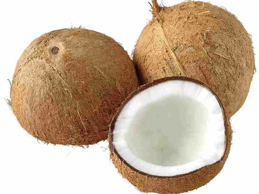 A mature coconut with a tough, brown husk. Inside, it contains a clear, refreshing coconut water and a thick, white flesh. The flesh can be eaten fresh, dried, or processed into coconut milk or oil. Brown coconuts are a versatile ingredient in various cuis