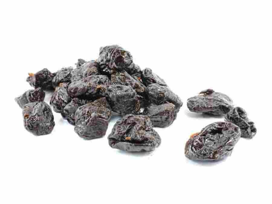 A dried plum, known for its sweet, chewy texture and dark color. Prunes are a good source of fiber and antioxidants. They are often enjoyed as a snack or used in various culinary preparations, such as baking and cooking.